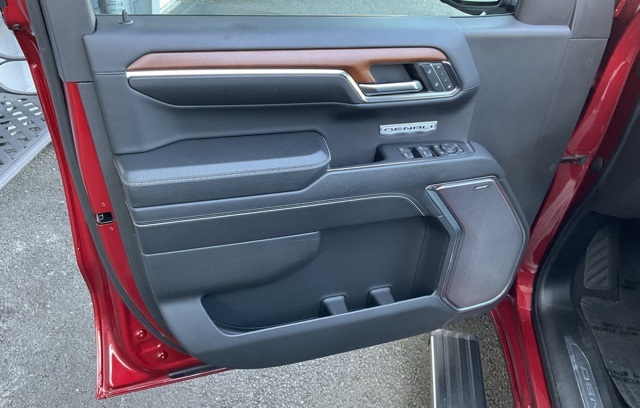 1-Owner Trade-In, Sierra 1500 Denali, 4D Crew Cab, 4WD, 10-Way Power Driver Seat Adjuster w/Lumbar, 10-Way Power Passenger Seat Adjuster w/Lumbar, Adaptive Cruise Control, Adaptive suspension, Apple CarPlay/Android Auto, Bed View Camera, Denali Reserve Package, Forge Perforated Leather Seat Trim, Front dual zone A/C, GMC MultiPro Power Steps, Heated 2nd Row Outboard Seats, Heated Driver & Front Outboard Passenger Seating, Memory seat, Multicolor 15" Diagonal Head-Up Display, Navigation System, Power Sunroof, Premium Bose 7-Speaker Sound System, Rear Camera Mirror, Remote keyless entry, Remote Vehicle Starter System, Steering Wheel Audio Controls, Technology Package, Ventilated Driver & Front Passenger Seats, Wheel Locks (Set of 4) (LPO), Wheels: 22" x 9" Painted Aluminum, Wireless Charging.